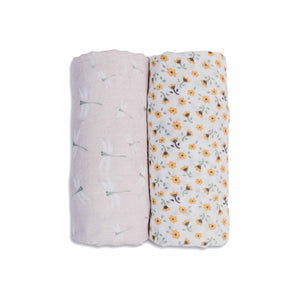 Crafted from ultra-soft premium muslin, this 2 pack of 1 cotton vintage floral print and 1 dragonfly print swaddling blanket muslins are both versatile and breathable. Beyond providing a snug and secure swaddle, they can double as a nursing cover's portable crib sheet's, baby blanket's, change pad's, stroller cover's, feeding cover ups and more.