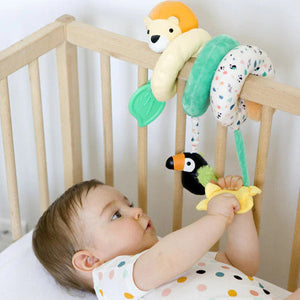 Featuring a jungle theme with playful characters like a lion and toucan, this spiral encourages motor skill development and hand-eye coordination through vibrant colours and intriguing textures. Babies can explore the attached teether, mirror, and maraca, stimulating their curiosity and providing endless sensory fun.