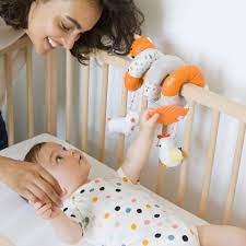 Featuring a farm theme with playful characters like a lamb and chicken, this spiral encourages motor skill development and hand-eye coordination through vibrant colours and intriguing textures. Babies can explore the attached teether, mirror, and maraca, stimulating their curiosity and providing endless sensory fun.