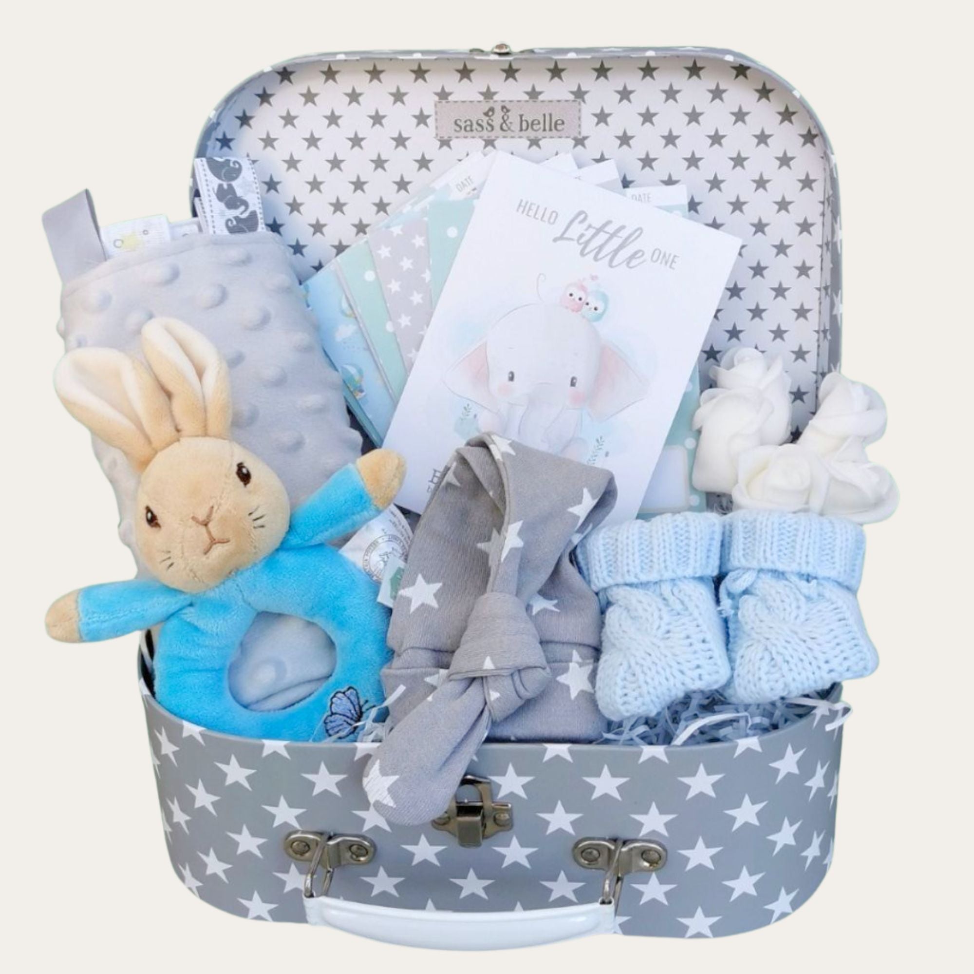 From our baby boy hamper collection, this adorable gift trunk will make the perfect present and includes:
