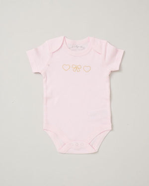 Hearts and Bows pink baby girls 5-Piece 100% Cotton Clothing Gift Set, a perfect gift for new parents and babies. This soft and breathable set includes: