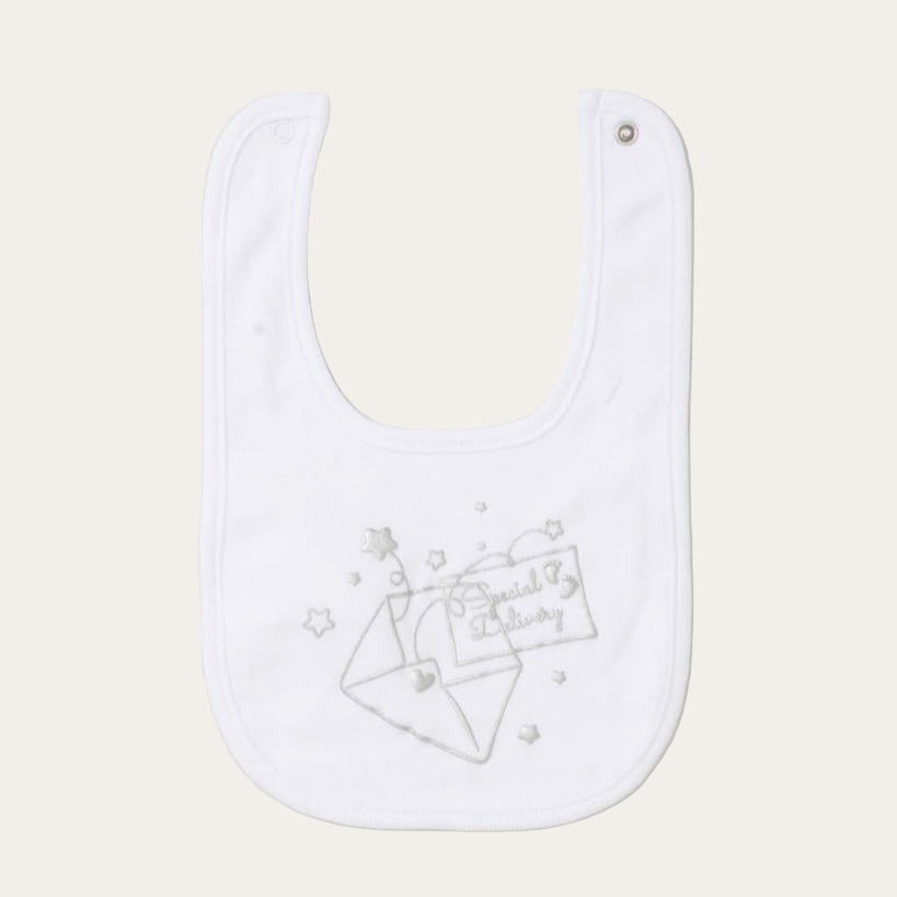 - A practical cotton bib with ‘Special Delivery’ embroidery