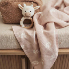 - 1 x Soft Cotton Muslin in Twig Wild Rose Print - A must have for every Mum-to-Be! This beautiful and highly absorbent muslin cloth, adorned with the enchanting Twig Wild Rose print, bring both style and practicality to a baby care routine. Crafted from the softest 100% cotton, this cloth is soft and gentle on little one’s delicate skin and very versatile. Used as a swaddling cloth, nursing pad, or lightweight blanket, this cloth will lend a helping hand in the most charming way possible to an expecting Mum, making everyday tasks a little more delightful.