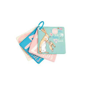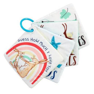 An on-the-go soft square book toy featuring the adorable Nutbrown Hares and the Guess How Much I Love You