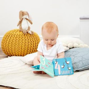 This soft, interactive book is perfect for babies and toddlers, featuring bright illustrations that teach numbers up to six. Designed for little hands, it includes textured patches, a crinkle-sound page, and a squeaky page to help develop fine motor skills and foster an early love of counting.