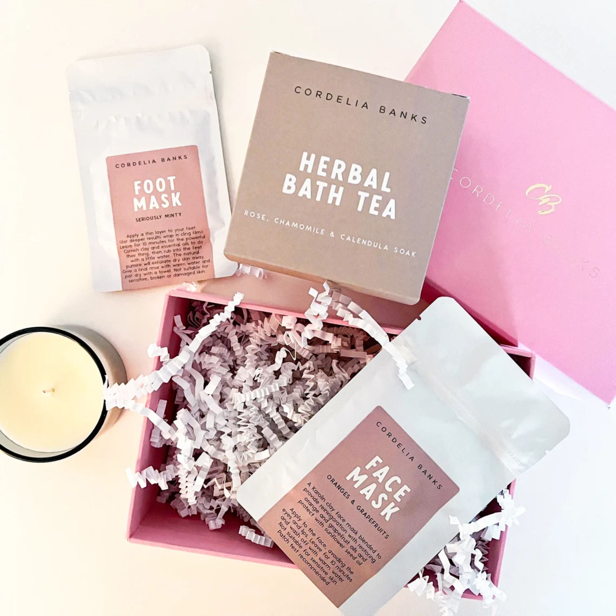 - Herbal Bath Tea : The perfect winter facial steamer, a fragrant blend of herbs and flowers designed to release toxins and leave pores to better absorb masks and serums. (enough for 3-4 uses)