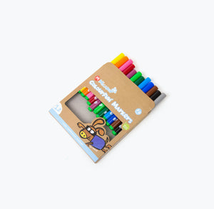 Colourfun Markers are the perfect sustainable choice for creativity at home or school! Made with super-washable ink that easily washes off skin and clothes, these markers feature sink-proof nibs designed for durability and a large ink reservoir for long-lasting use.