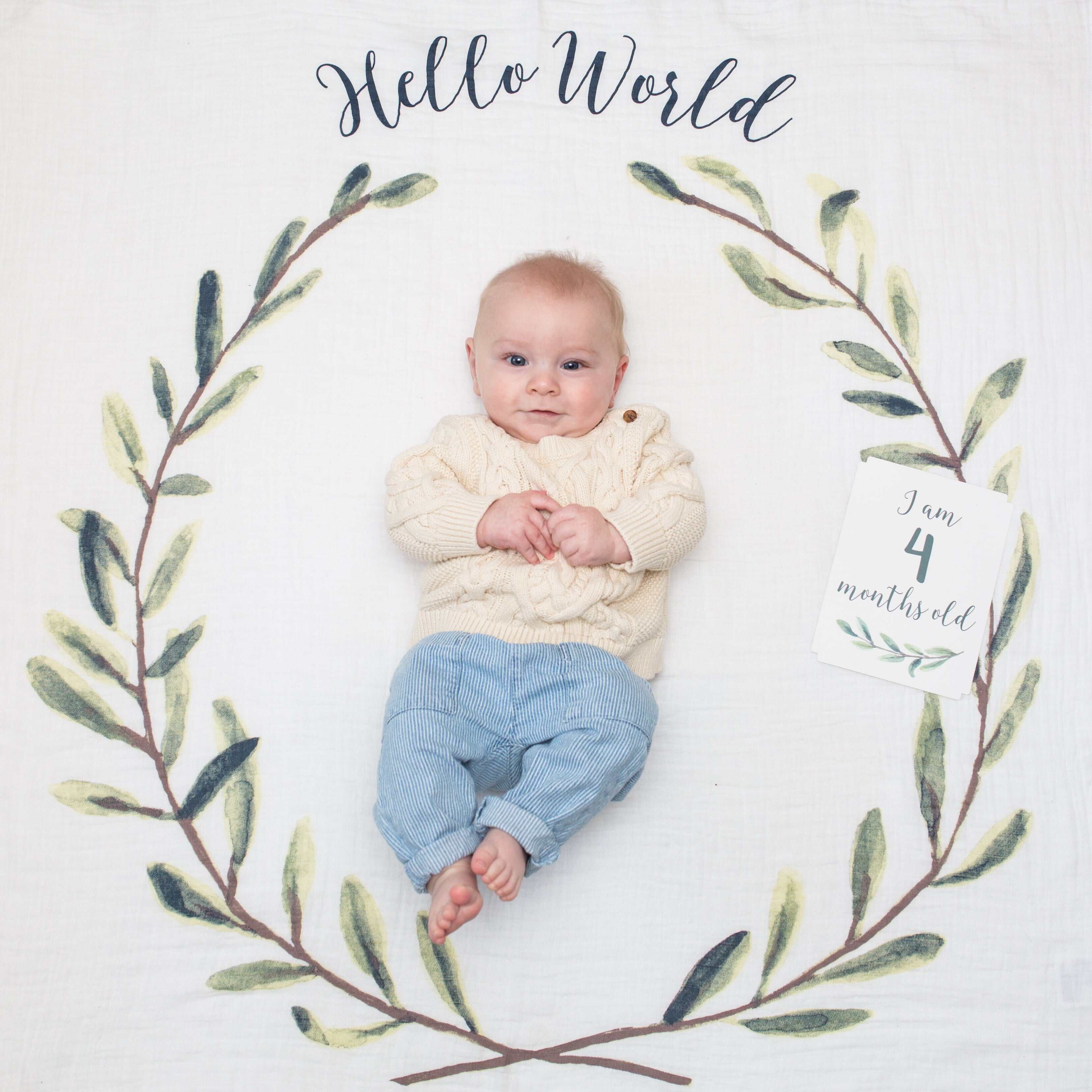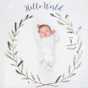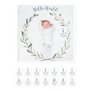 Large Cotton Swaddle and Milestone Cards - Hello World