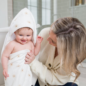 Make bath time extra special with this Daisy Print Hooded Towel. Designed with both style and practicality in mind, this towel features a cosy hood, a convenient hang hook, in a daisy print