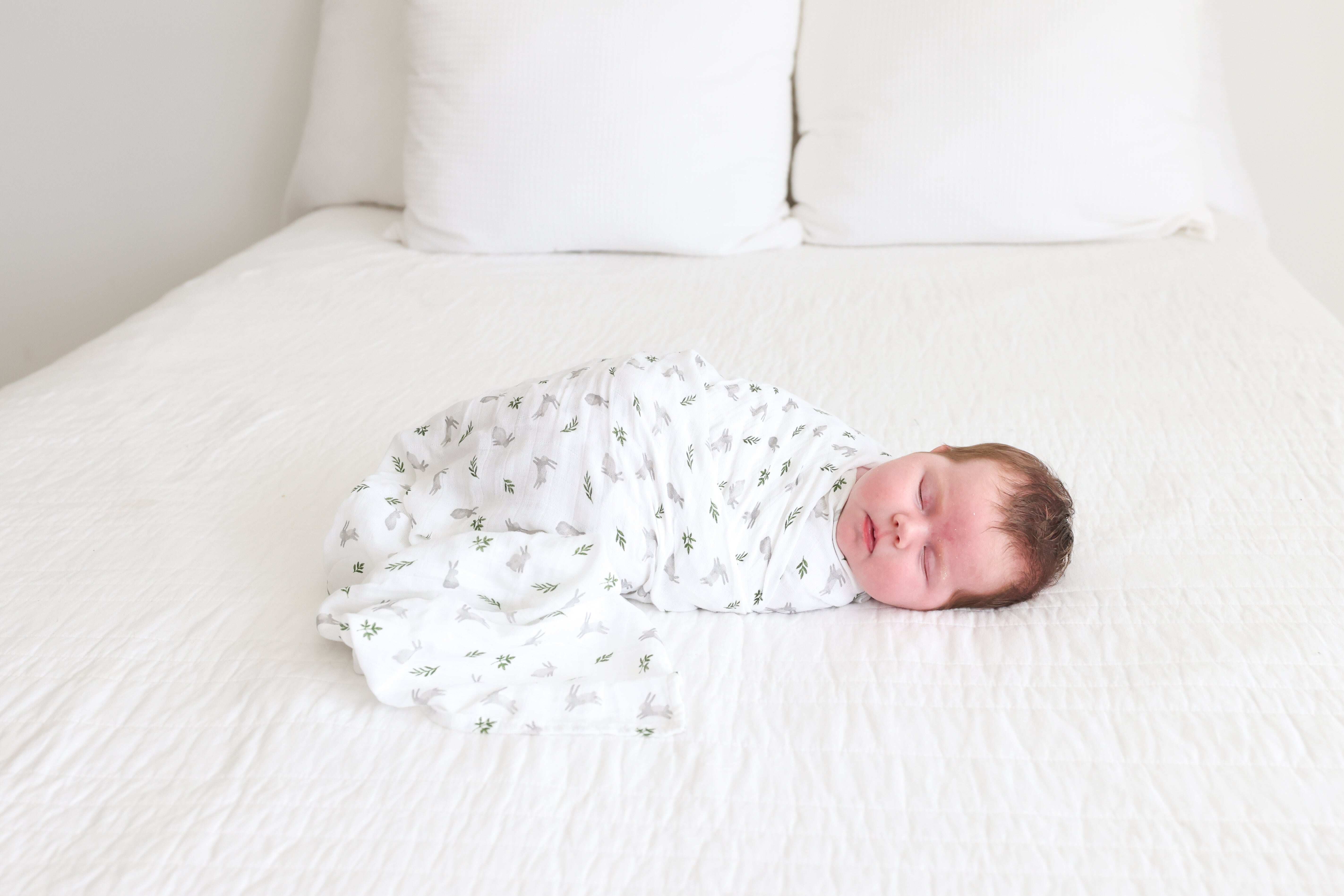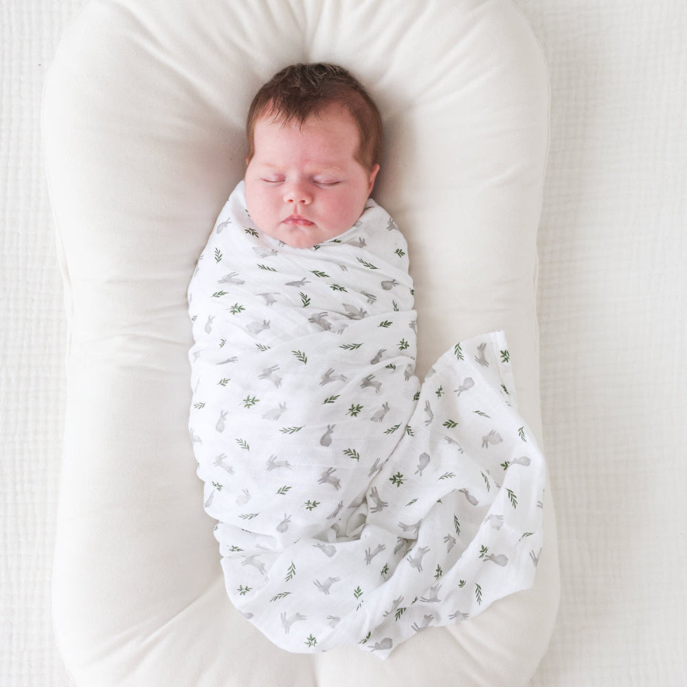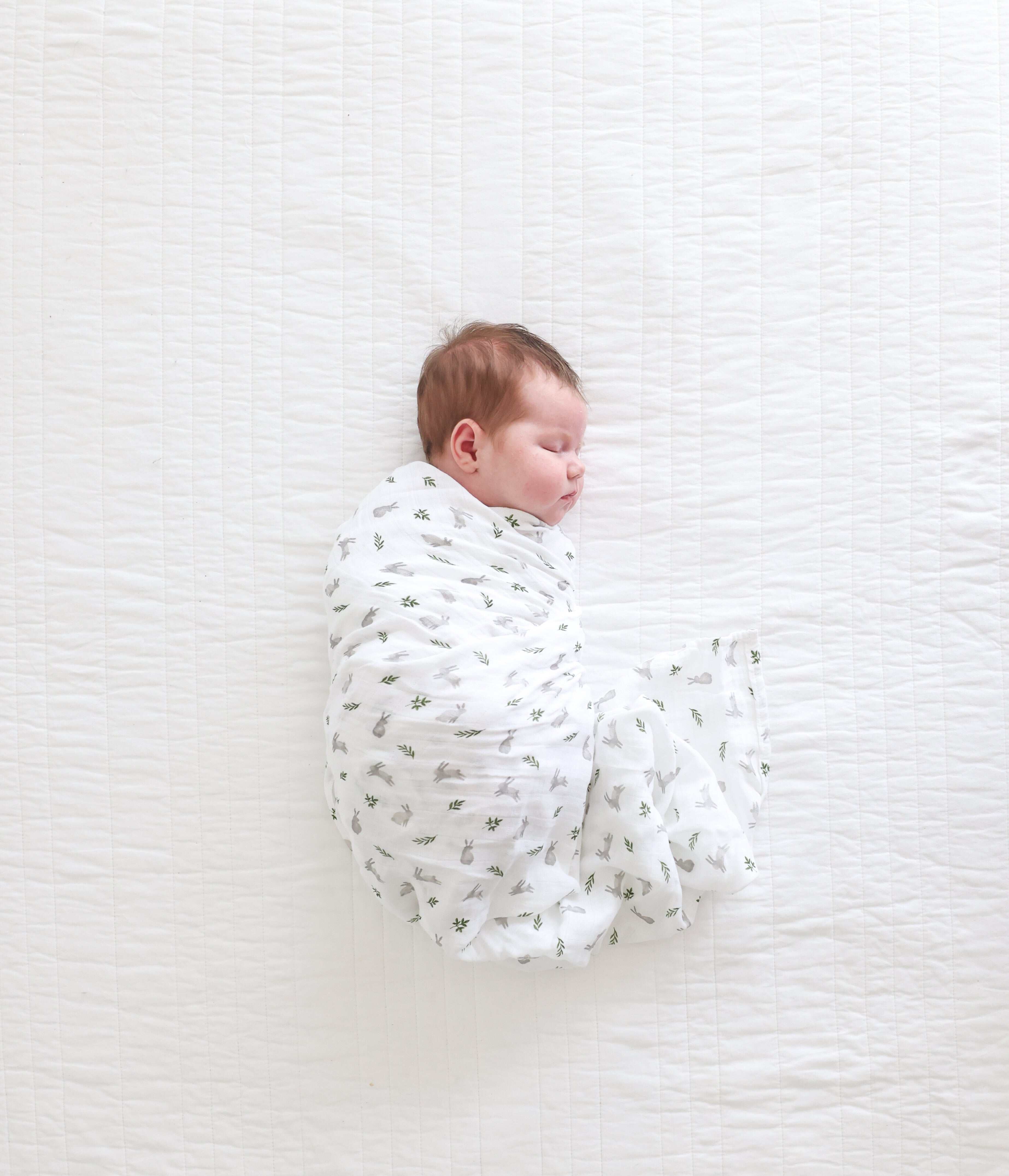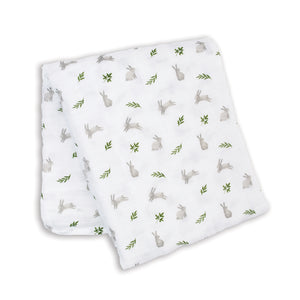 Introducing Lulujo's Muslin Swaddle, made from 100% soft premium muslin. Not only do these blankets provide a feeling of safety and security for your baby, but they also have multiple uses such as a nursing cover, crib sheet, and more. Keep your little one cozy in style with adorable bunny designs.