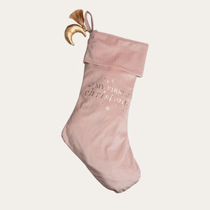 Dusky Pink My First Christmas velvety plush Christmas Stocking