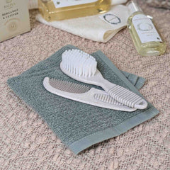 - 1 x Baby wash cloth. Soft and sustainable. Sage green.