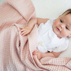 - 1 x Luxuriously soft ballet pink baby blanket. This gorgeous 100% cotton blanket from Lulujo adds a touch of elegance to this gift and is perfect for a cot, pram, or as a beautiful nursery accessory. This baby blanket can be personalised with baby's name.