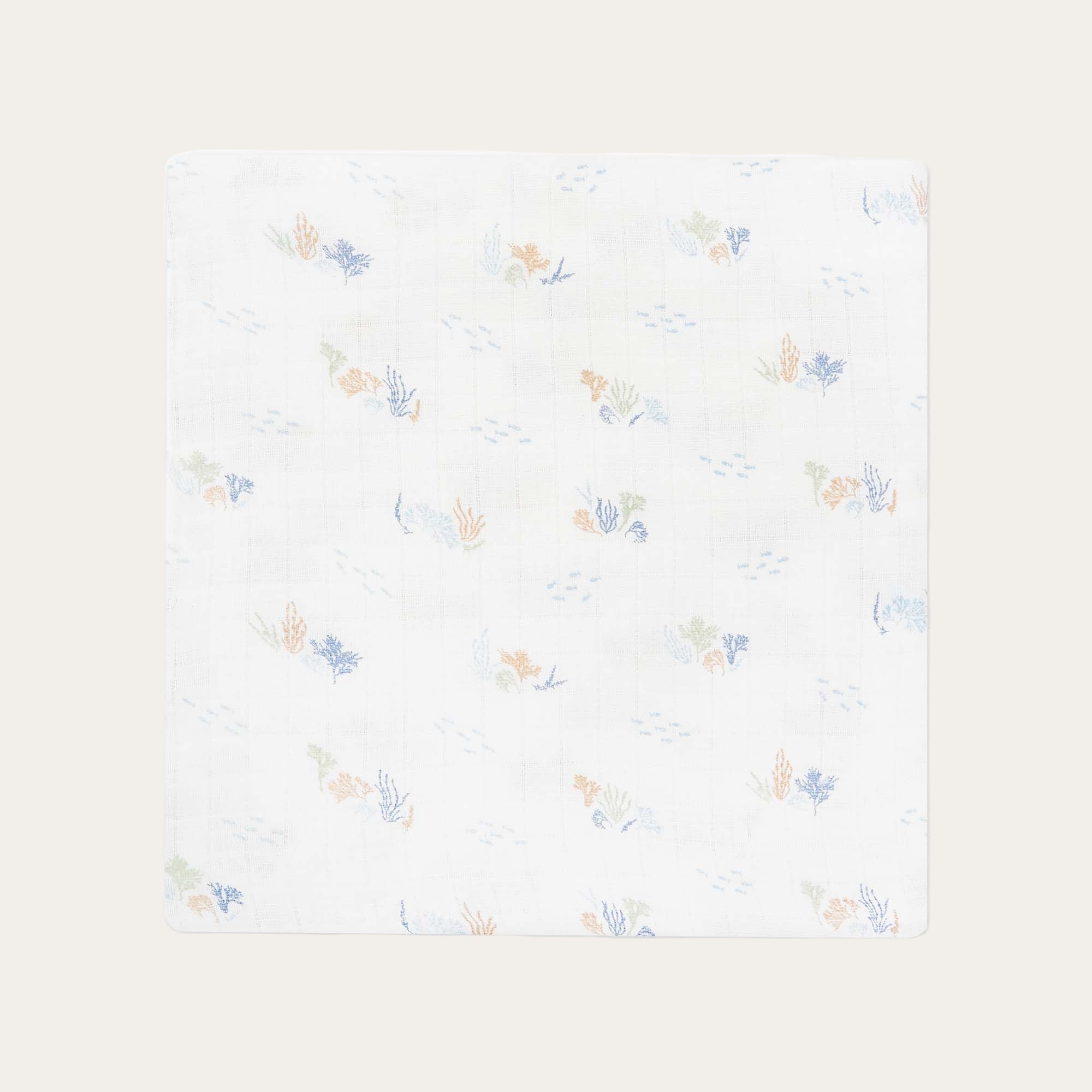 Baby muslin swaddle in a neutral unisex coastline print is super soft and made from organic cotton.