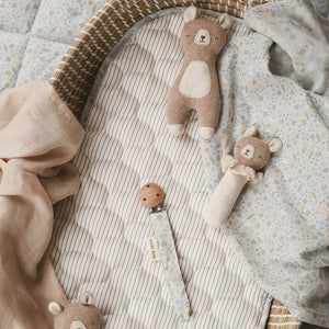 Baby muslin swaddle in a neutral unisex nature trail print is super soft and made from organic cotton.