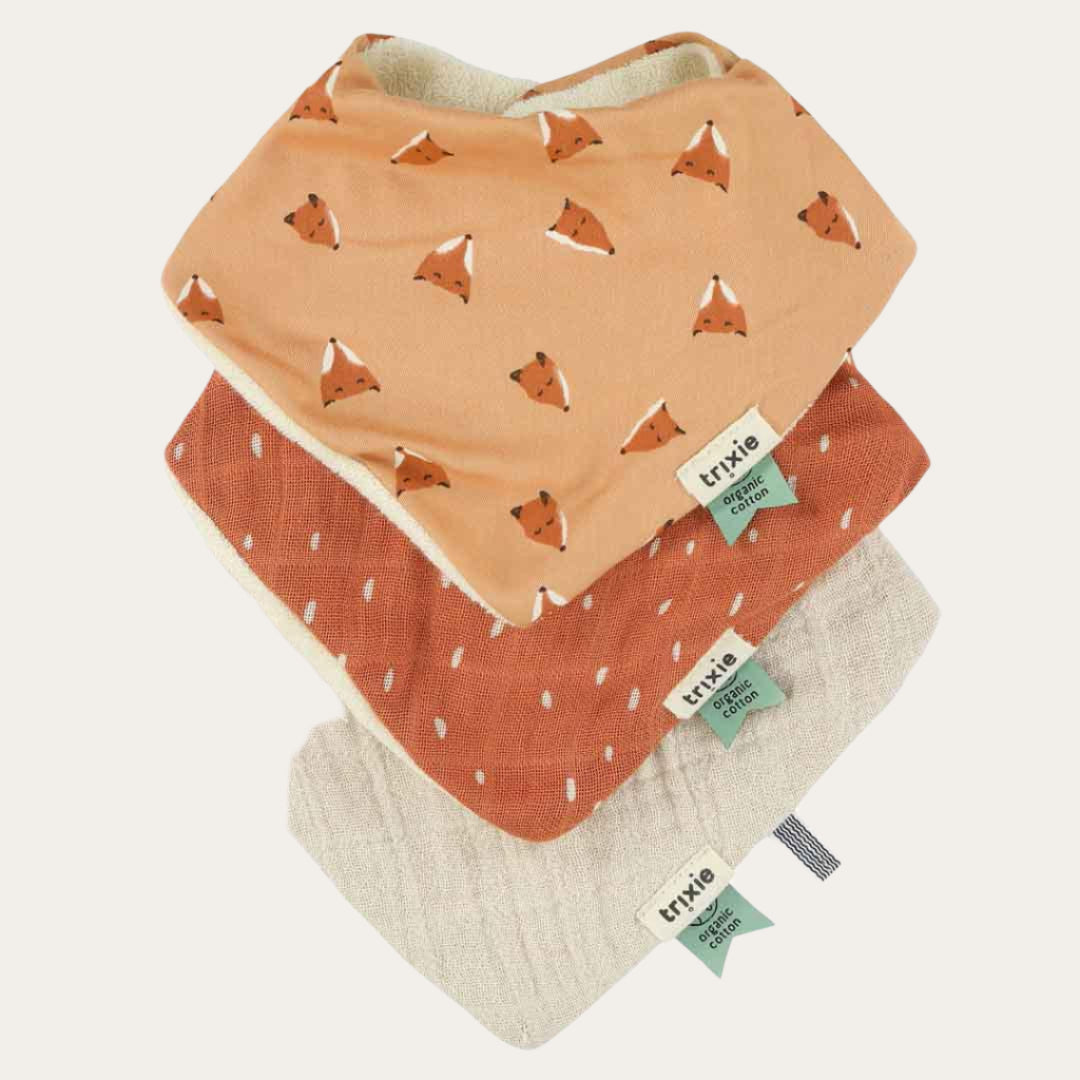 Our Fierce Fox Bandana Bib 3-Pack is the ultimate solution for stylish, practical protection during baby's early months. Made with care and comfort in mind, this set includes three absorbent bandana bibs: one with a playful Fierce Fox print, and two in beautifully soft, solid-colour muslin fabric.