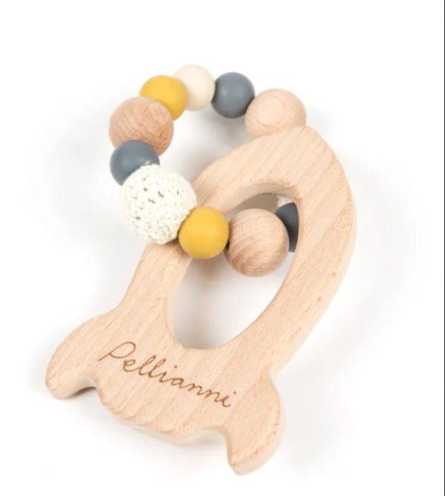 This neutral coloured organic teether and clutching toy is the perfect mix of textures to captivate and support the baby’s sensory exploration. Made from 100% organic, untreated Beech and Maple wood, crochet balls of cotton thread and chewable balls of food grade silicone. It will be your little one’s favorite toy for years!