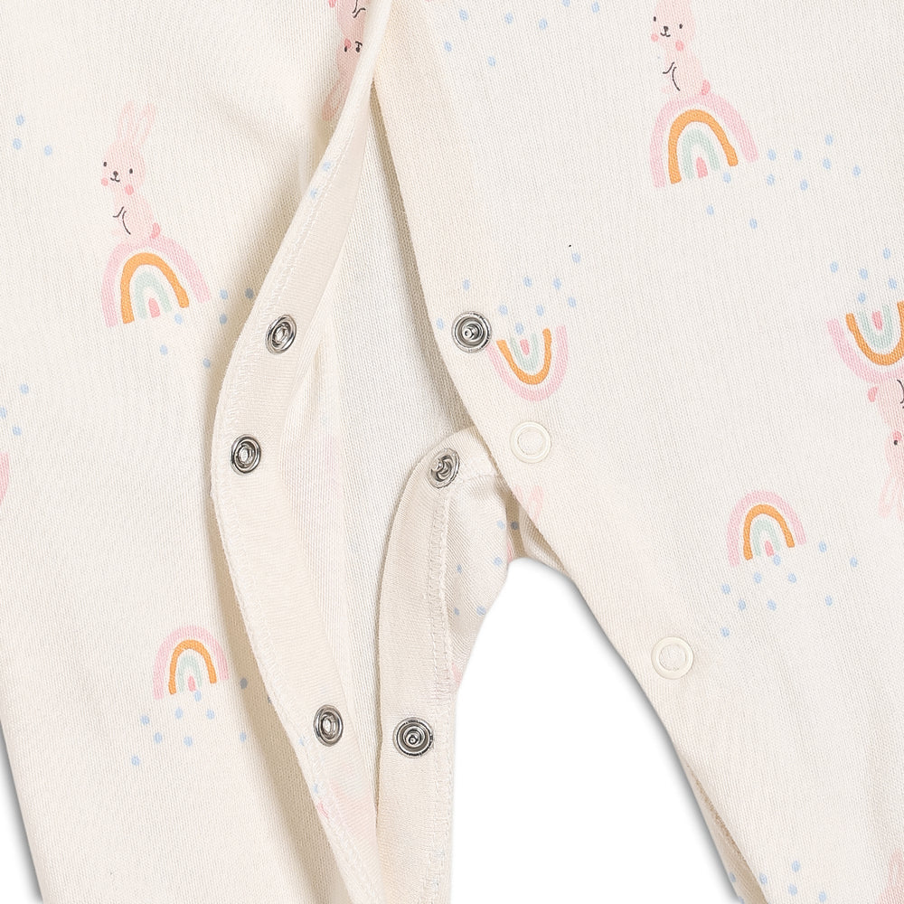 Every piece is made from baby-safe cotton with an extra-soft hand feel, designed for easy changes and everyday wear. Inside, you’ll find a soft knitted cardigan for warmth, a rainbow-print sleepsuit with poppers for quick changes, and a striped wrap-front bodysuit with ‘Grow with Me’ snaps to fit beautifully as she gets bigger.