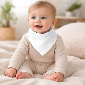 White Bandana Bib. Made from 100% soft and breathable cotton, this bib is gentle on delicate skin while providing excellent absorbency for feeding, teething, or everyday dribbles.