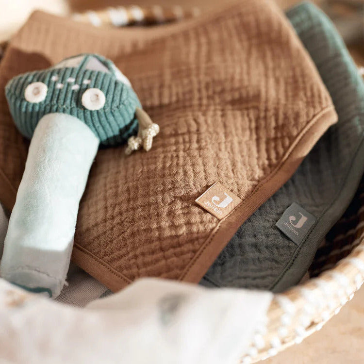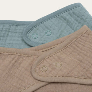 Keep mealtimes calm and clothes dry with this 2-pack of Sea Green and Biscuit bandana bibs, made from lightweight muslin.