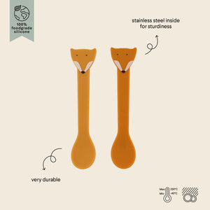 Colourful Silicone Brown Fox Baby Spoons with Stainless Steel Core – Durable and Safe for Self-Feeding