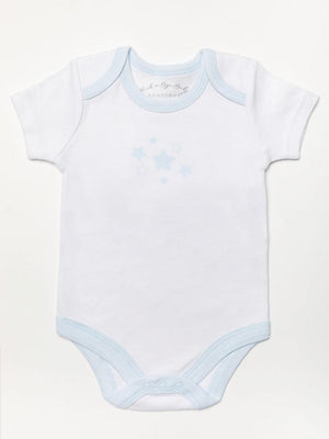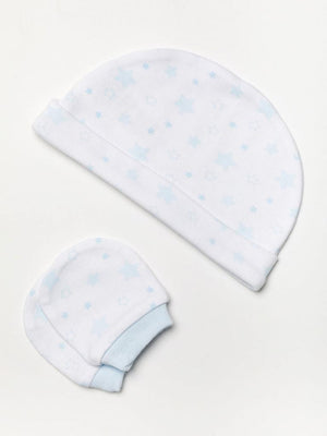 Stars 5-Piece 100% Blue Cotton Clothing Gift Set, a perfect gift for new parents and babies. This soft and breathable set includes: