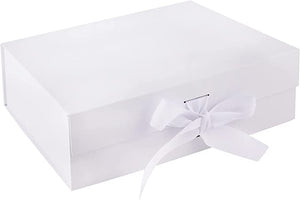 This elegant white gift box with magnetic fastening is a customer favourite.