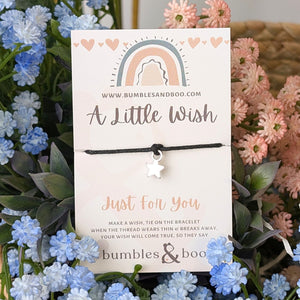 This lovely wish sentiment bracelet is a wonderful gift. Simply make a wish, tie on the bracelet, and when it wears away, your wish may come true.