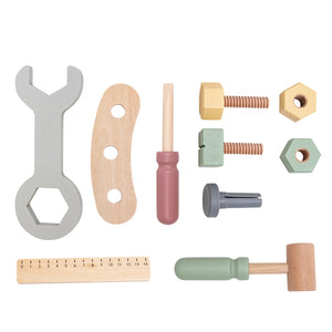 Featuring 11 durable pieces in natural colours, this toy offers a safe and stimulating way for toddlers to engage in imaginative play.