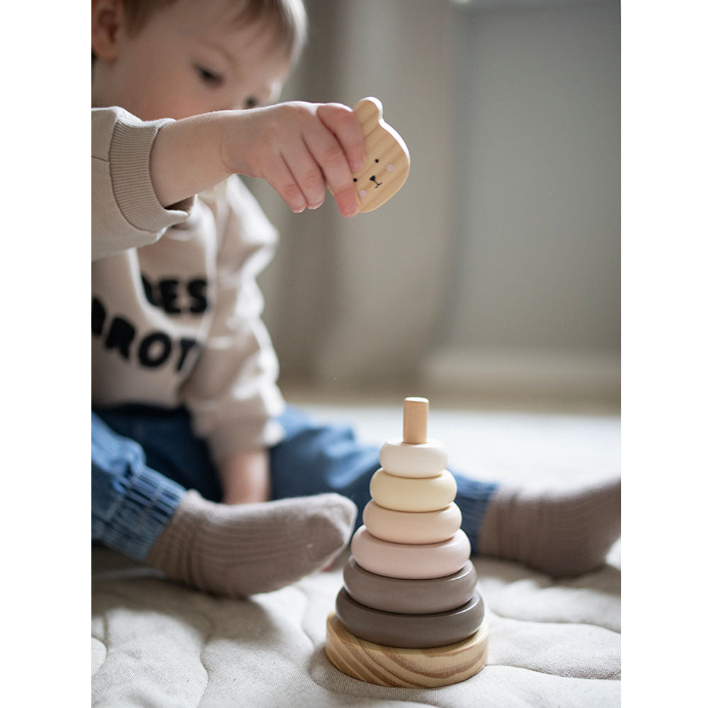 Spark your child's creativity and motor skill development with the wooden Stacking Ring Teddy in a beautiful natural finish. This stacking toy features a sturdy wooden pole for enhanced safety and includes six wooden rings in varying sizes and shapes, encouraging imaginative play and exploration.